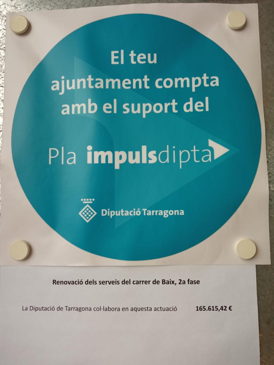 La Diputació de Tarragona ha concedit a l'Ajuntament de Maspujols una subvenció de 165.615,42 €, corresponent a l'obra de "Renovació de serveis i pavimentació del carrer de Baix, 2a fase", del Pla ImpulsDipta 2024-2027